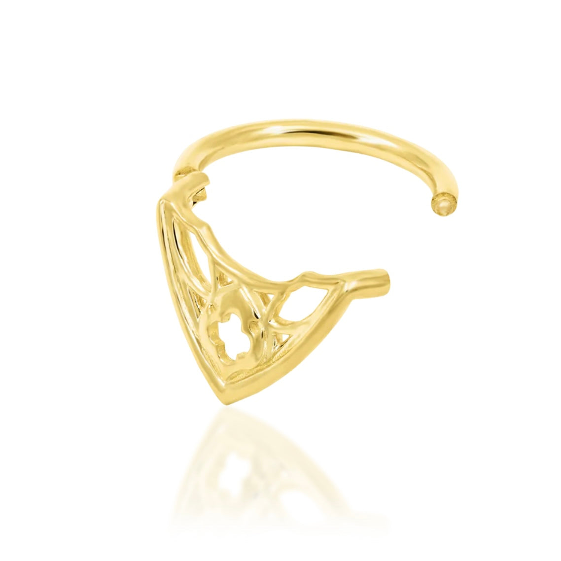 All she needs is bells. Cathedral hosts a spectacular gothic architecture style. In solid 14K Gold, this clicker hoop (hinged segment ring) is very easy to use. Perfect for conch and Helix piercings! Available in 14k yellow, white and rose gold. 16 gauge, 11mm size. Total hoop dimensions: 12.4mm x 8.6mm.