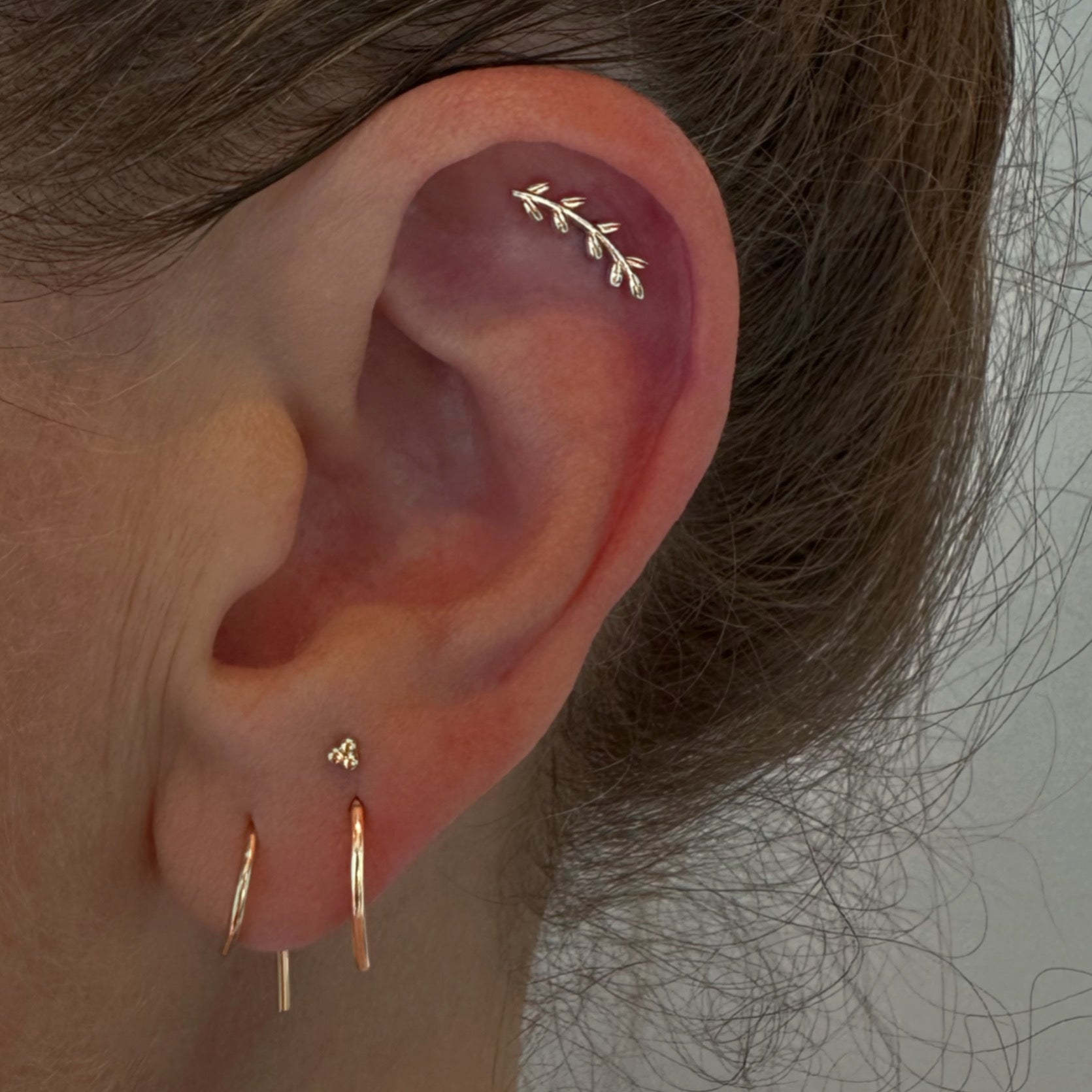 Our 14KT yellow gold Folha climber is adorned with small Leaves as an expression of your love for nature and your unique sense of style. They celebrate the beauty of the natural world and add a touch of organic elegance to your ensemble, making them a perfect choice for any season.