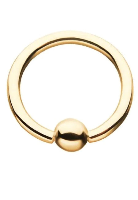 Made of solid 14K yellow gold, this captive bead ring suspends a radiant 4mm bead.