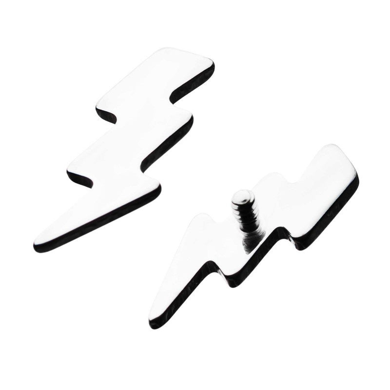 Titanium Lightning Bolt Tops fits T0.9/16g & T1.2/14g Internally Threaded Jewelry. Manufactured out of Implant Grade High Polish Titanium Jewelry (TI-6AL-4V ELI ASTM F136).