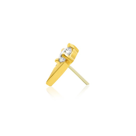 This 14K yellow gold threadless top features a high polish tulip base adorned with one 3mm CZ stone. This piece measures 4.20mm x 7.50mm.